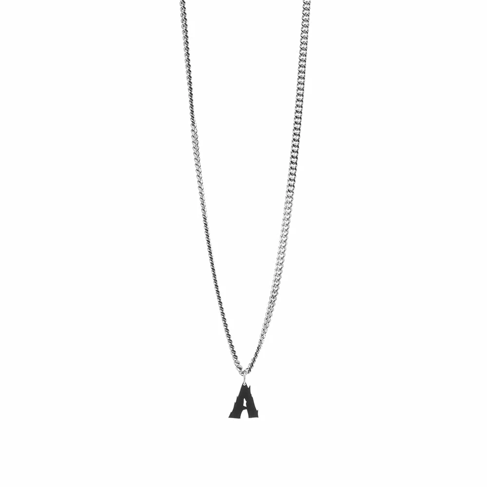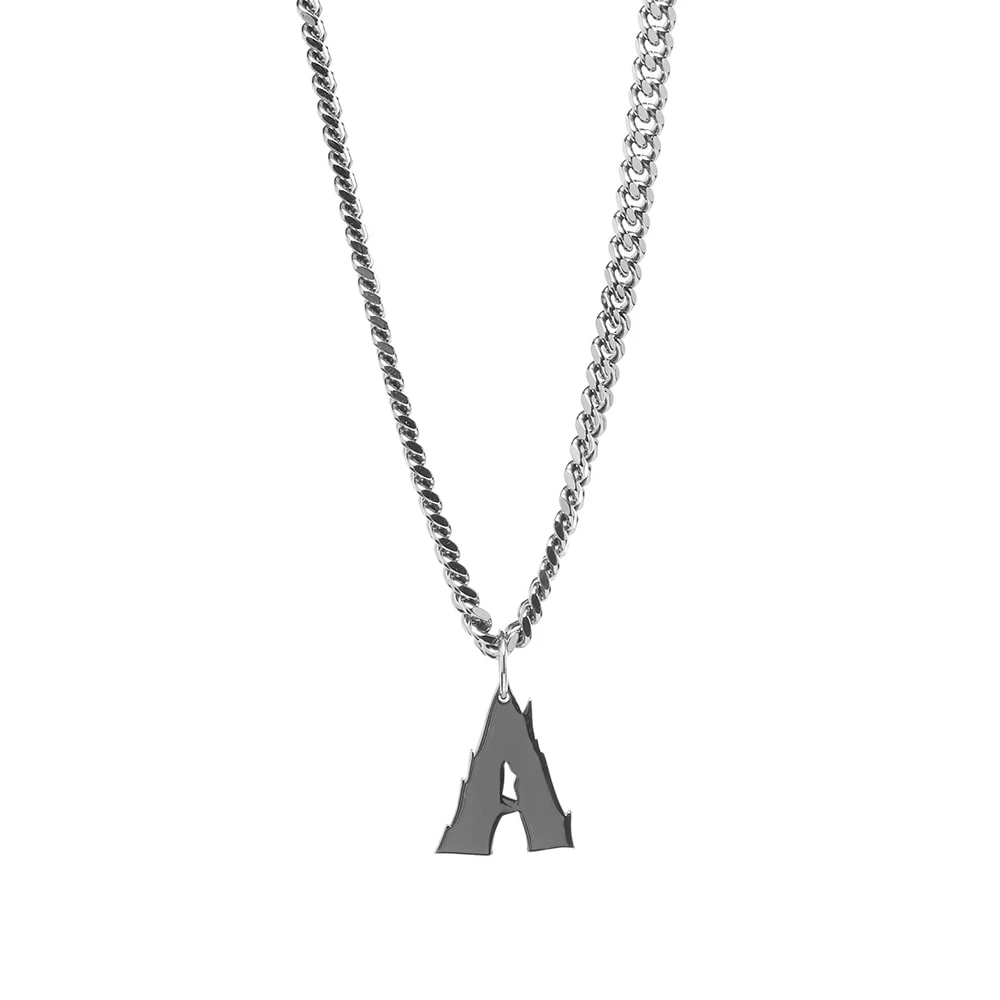 Add some contemporary edge to your outfits with this chunky necklace from 1017 ALYX 9SM. Made in Italy from silver-plated brass, itβs weighty curb chain is strung with a jagged βAβ charm and secured with a handy lobster clasp β all of which creates a simple yet subversive look.