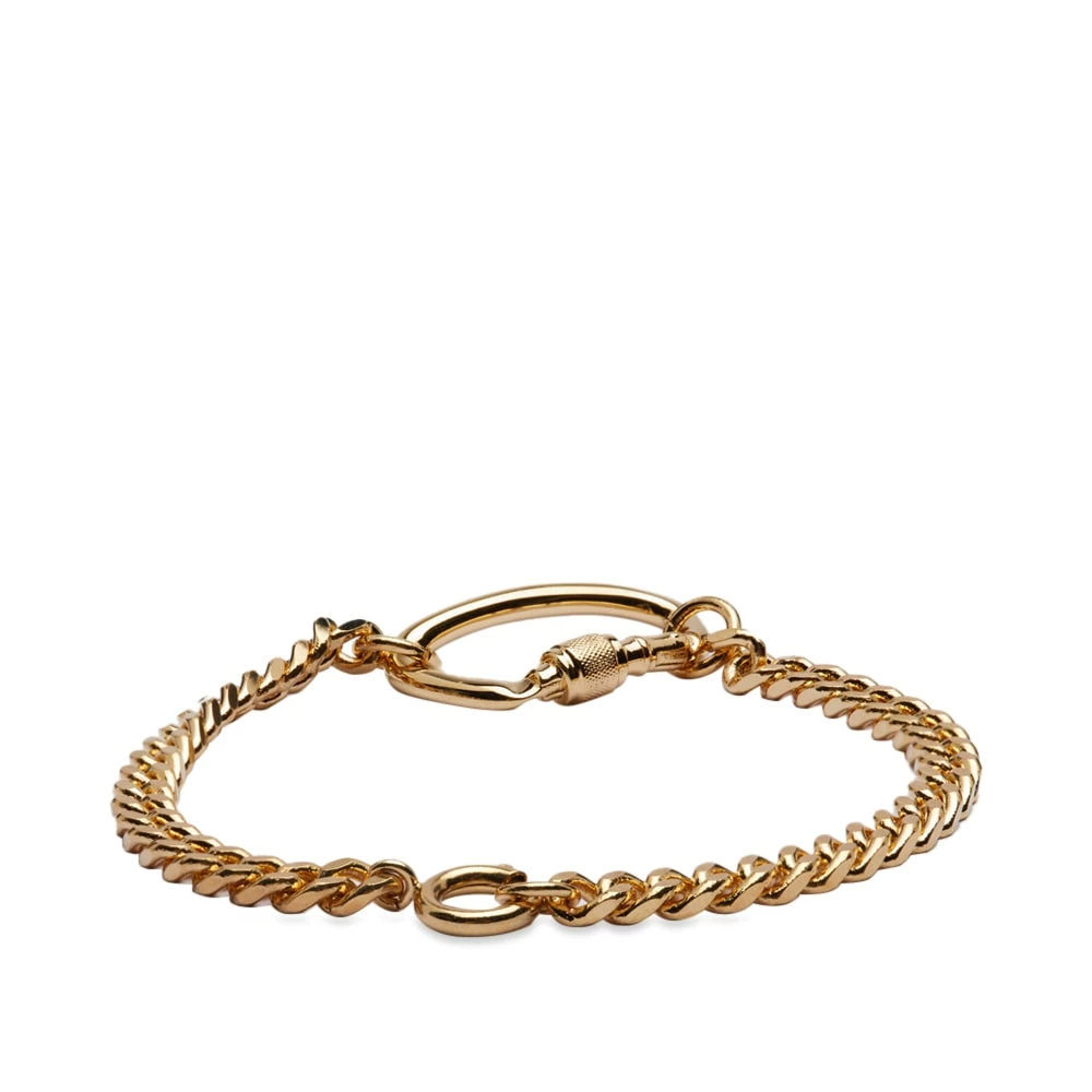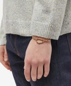 While A.P.C. creates elevated staples with understated French flair, they’ve always retained a utilitarian slant. And, nothing says utility like a carabiner lock. Taken as the main feature of this bracelet, it’s gold and strung on a chunky chain elevating it from a practical accessory to a chic adornment.