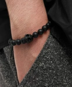 Itβs no secret that luxury fashion house Alexander McQueen has a penchant for skeletons – and this black bracelet is a prime example. Italian-crafted, its matte-black rock ‘n’ roll bead construction stretches for comfortable wearing and promises to bring a touch of gothic glamour to your daily look.