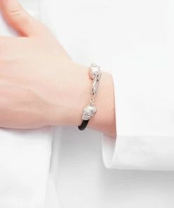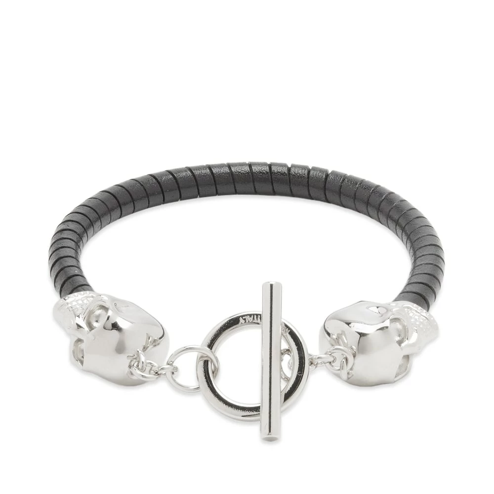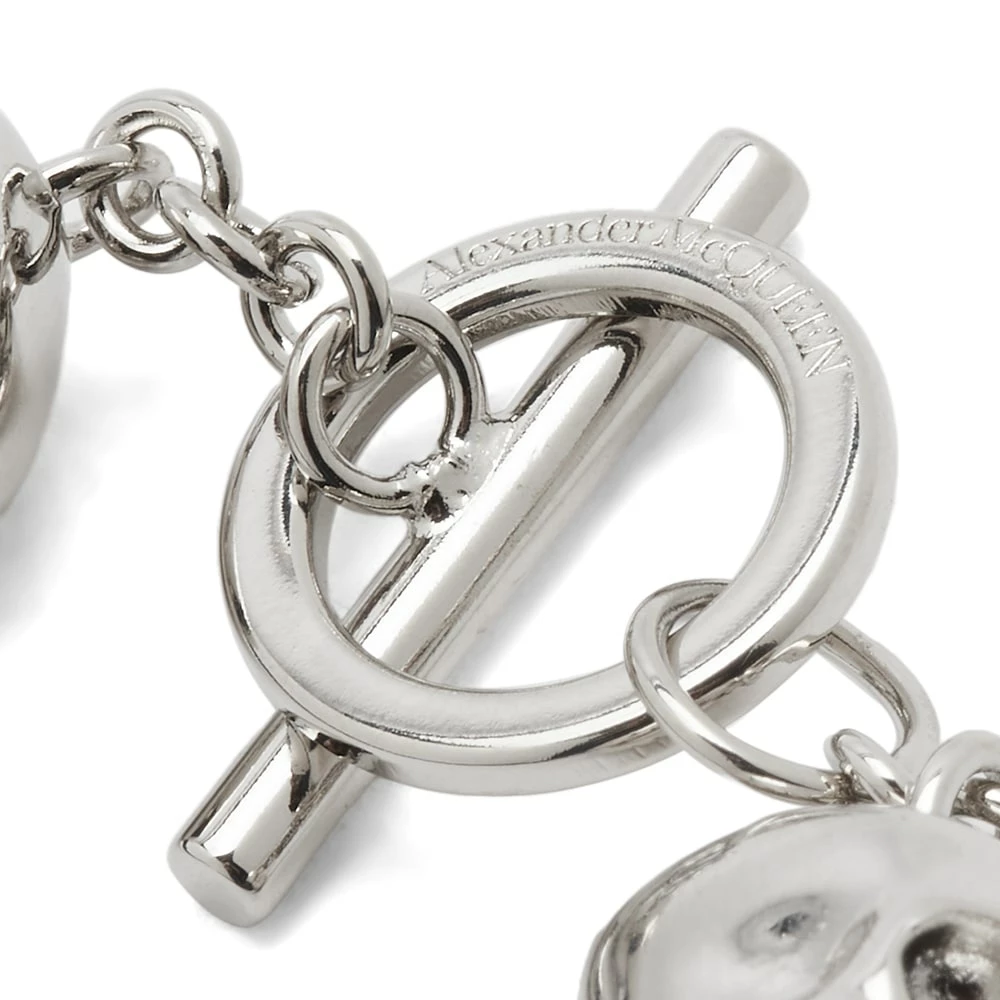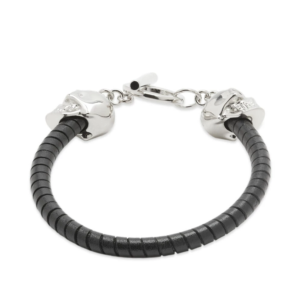 First seen on the British brand’s 1992 runway show inspired by Jack the Ripper and his victims, Alexander McQueen’s gothic-infused skull motif continues to dominate collections and accessories like this bracelet. Crafted from luxurious calfskin leather, it wraps around the wrist with an engraved T-bar fastening – set between a pair of the subversive skulls.