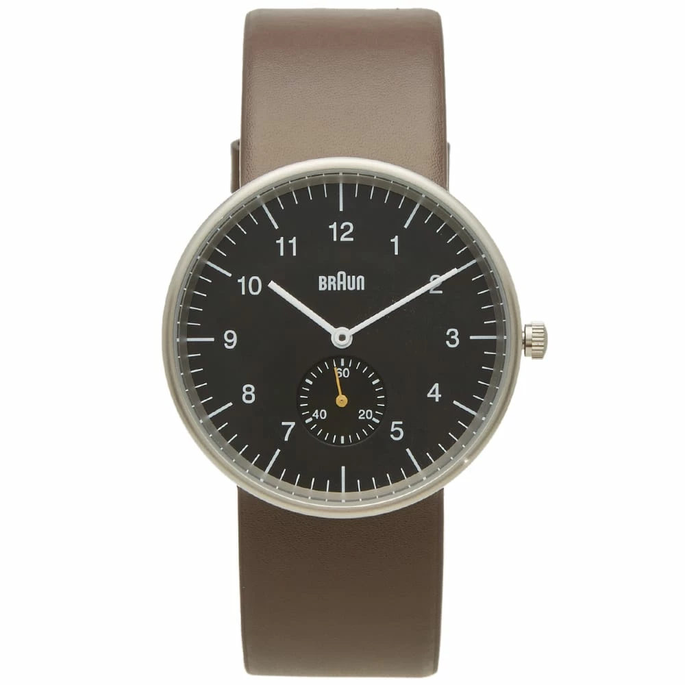 Braun’s BN0024 silhouette is a classic utilitarian design that embodies the brand’s fuss-free ethos. Bold hands and markers stand out against a contrasting face housed in a 38mm stainless steel and hardened mineral glass case along with a Quartz 3 movement. Water resistant up to 50 metres, this watch is finished with a simple yet functional leather strap.