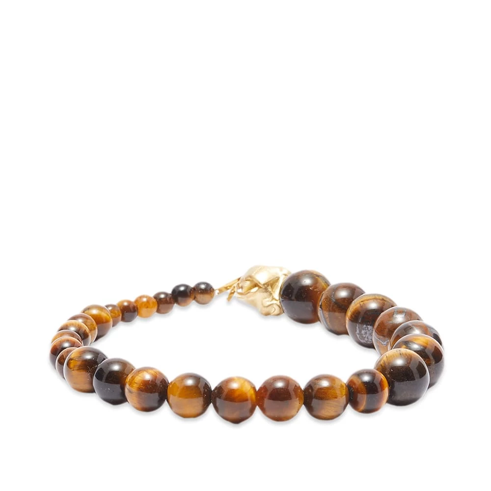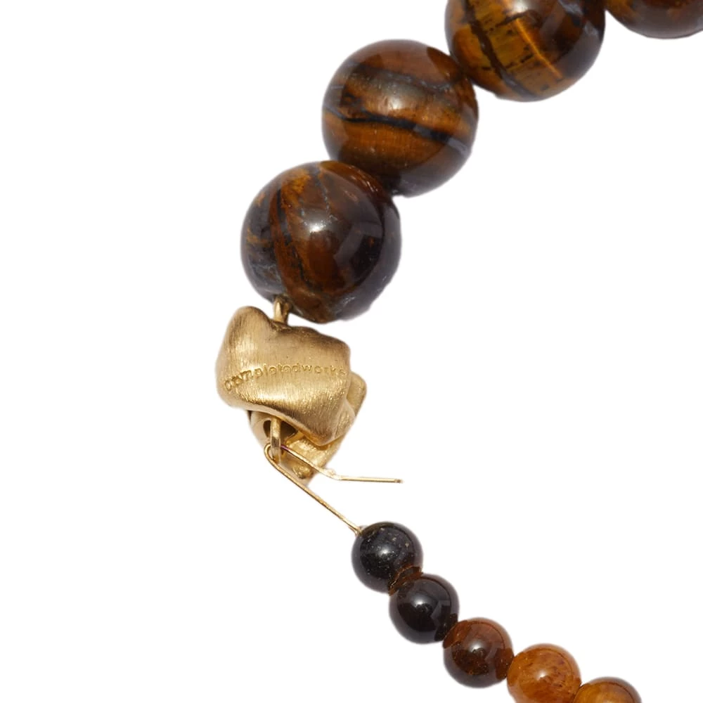 Completed Works’ sculptural jewellery is always a conversation starter. This bracelet is from the river-inspired Tidelands collection. A string of tiger eye beads vary and transform in size as they move around the wrist, mimicking the flow of water, back and forth. A 14k gold plated organic form closes things in.