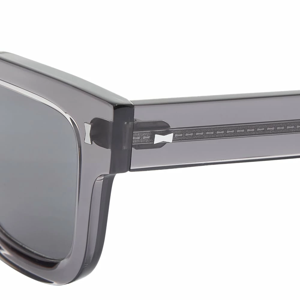 Designed to make a statement, these ultra-modern Plender sunglasses from Cubitts are crafted from durable cellulose acetate and boast a bold rectangular shape. The translucent smoke-coloured frames play on light reflection with innovative bevelled detailing – and feature tonal grey lenses that provide optimal UV protection in style.