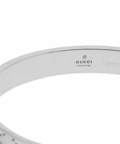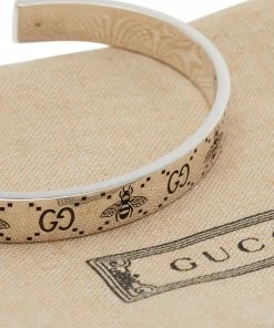 One of the world’s most desirable fashion houses Gucci is a brand that continuously redefines luxury. The Italian house presents the bee motif bangle bracelet. The House has used animals in collections since the brand began and the bee motif has been used by Gucci since the 70s, featuring heavily in AW collections through the years. As a sign of nobility in Europe the bee symbolises healing and legitimate power. This bracelet is made of the 925 silver that the brand favours and features the bee pattern engraved on it. The brand’s GG motif also appears on the bangle.