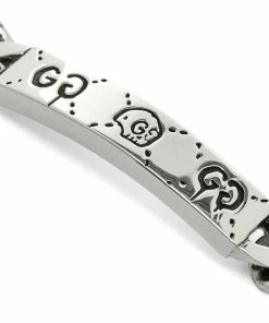 Alessandro Michele’s contemporary vision for Gucci encourages fun experimentation, like in AW16 when he invited graffiti artist Trevor ‘Trouble’ Andrews— a.k.a. GucciGhost— to collaborate. Years later, this bracelet is still engraved with the Canadian’s ghoulish tag, framed by a spray-painted spin on the iconic GG monogram print. It’s crafted in Italy with a solid sterling silver curb chain and a lobster clasp closure.