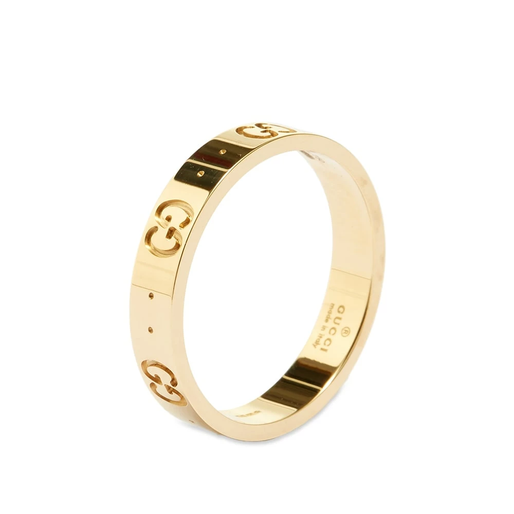 Gucci’s most emblematic motif – Guccio Gucci’s initials, the interlocking double ‘G’ – is found engraved in 18k yellow gold along this luxe thin band ring. 4mm in width, it boasts true Italian craftsmanship and – it is true – that no collection is complete without the ‘GG’ effect.