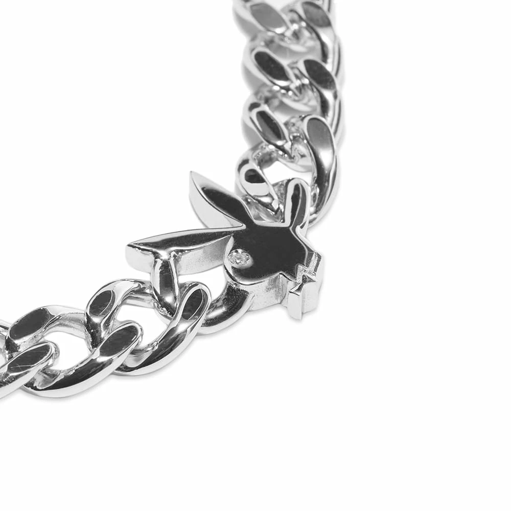 Contemporary London-based Jewellery brand Hatton Labs teams up with Playboy for a playful collaboration. This sterling silver bracelet is made up of chunky Cuban links and detailed with iconic Playboy Bunny and small, luxe sapphires throughout.