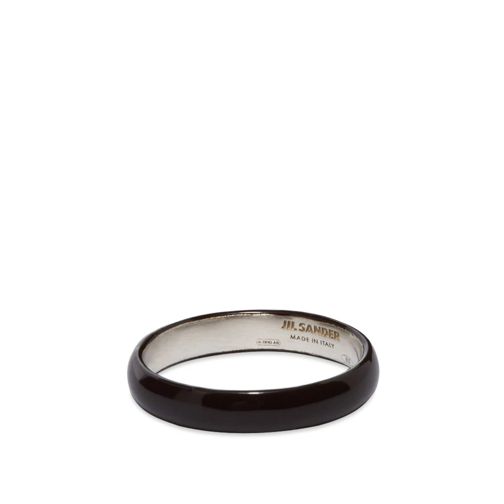 Jil Sander reimagines its classic ring in a winter-ready brown shade. Made from sterling silver, it arrives in the usual chunky, rounded band shape and is updated with brown-toned enamel coating on the outside for a refined, modern look. It’s finished, as usual, with the brand’s logo engraved on the inside.