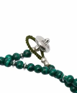 Draw out negative energies with this malachite bracelet from Mikia. Continuing to be inspired by her travels, Aki Mitsubayashi’s label crafts this delicate accessory with a double-wrap structure – studded with luxuriously deep green malachite beads and silver-tone punctuations.