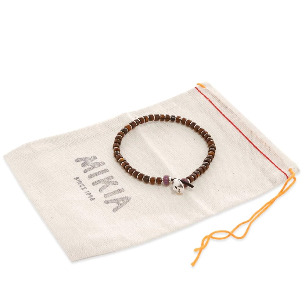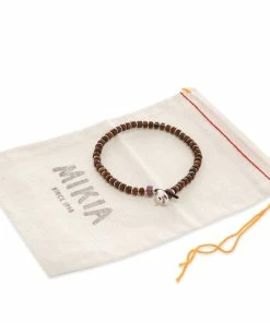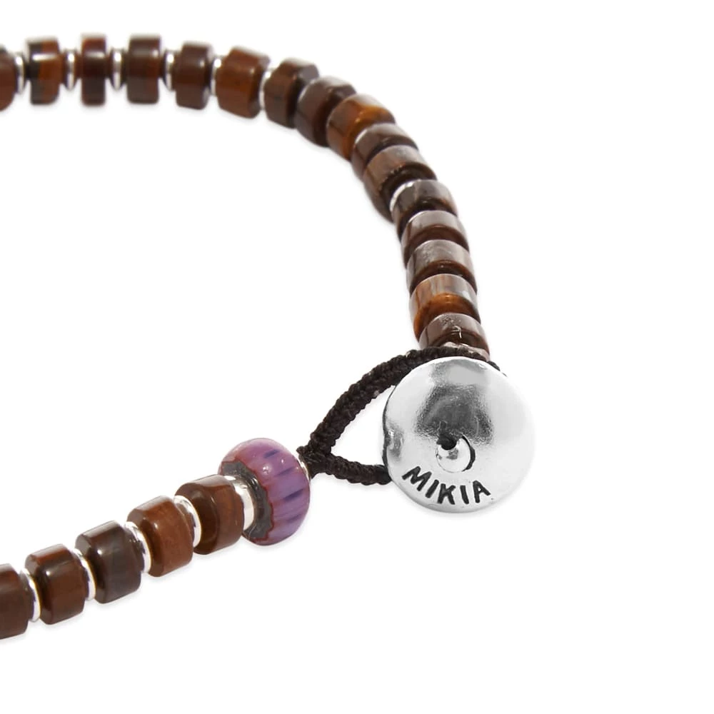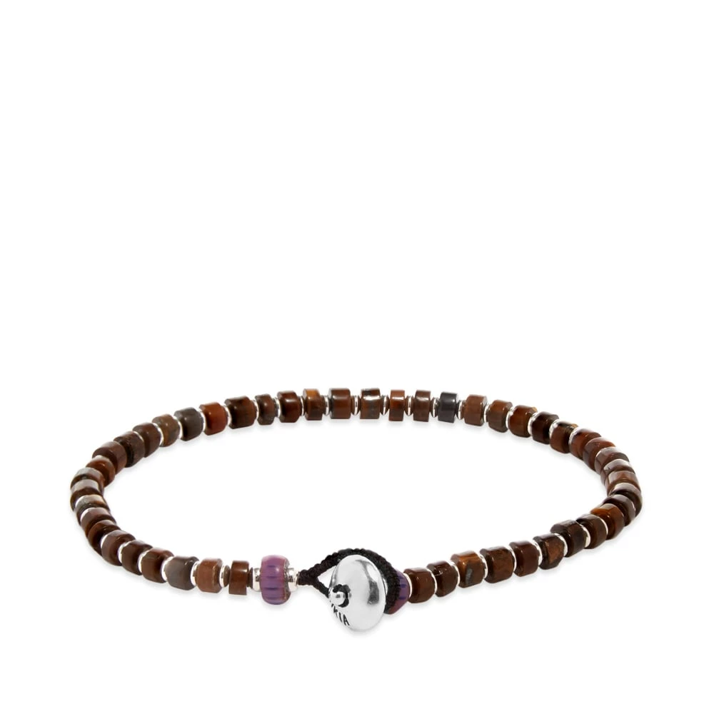 Inspired by souvenirs and market stall treasures from all over the world, Mikia is renowned for its artisan, travel-inspired jewellery. This bracelet, beaded with iron tiger’s eye stone and sterling silver, is a stunning example of the Japanese brand’s craftsmanship. Fastened with a toggle clasp, it’s minimally engraved with the brand name.
