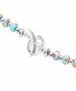 Aki Mitsubayashi encapsulates her adventures with Mikia’s contemporary jewellery collection and this necklace. Turquoise and hematite beads are fused together to create a marble effect across the design – while subtle silver-tone accents add to the good vibes.