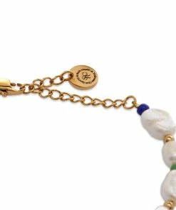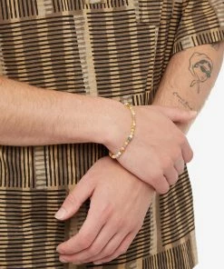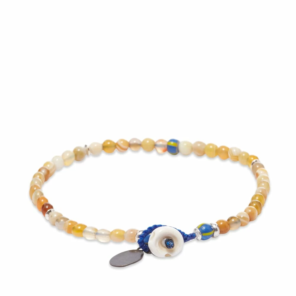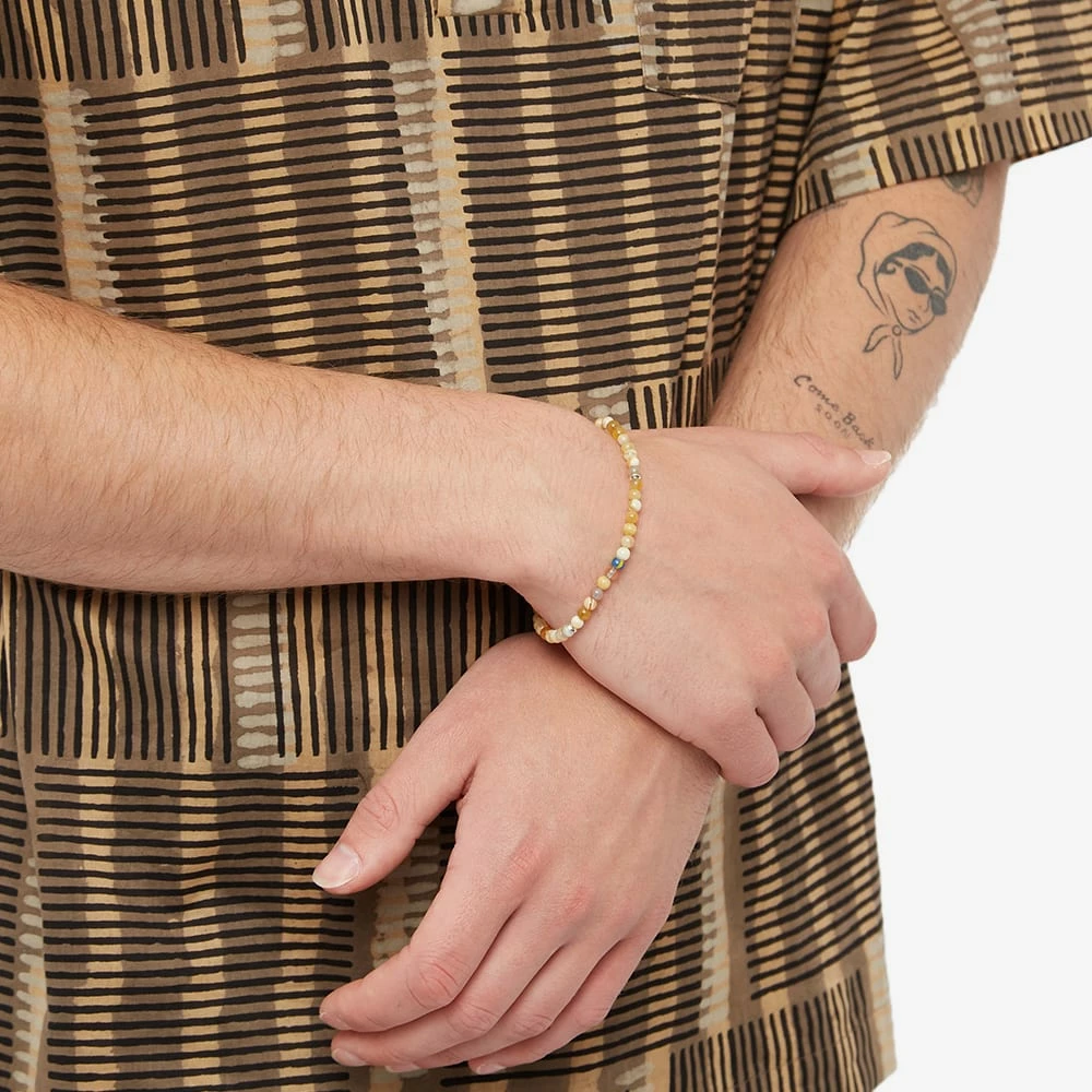 Mikia is renowned for its travel inspired pieces and this bracelet is no different. Itβs crafted from smooth beads of yellow stone and glass, spaced with sterling silver discs that match the toggle clasp that give it that sentimental trinket look.
