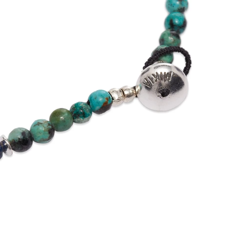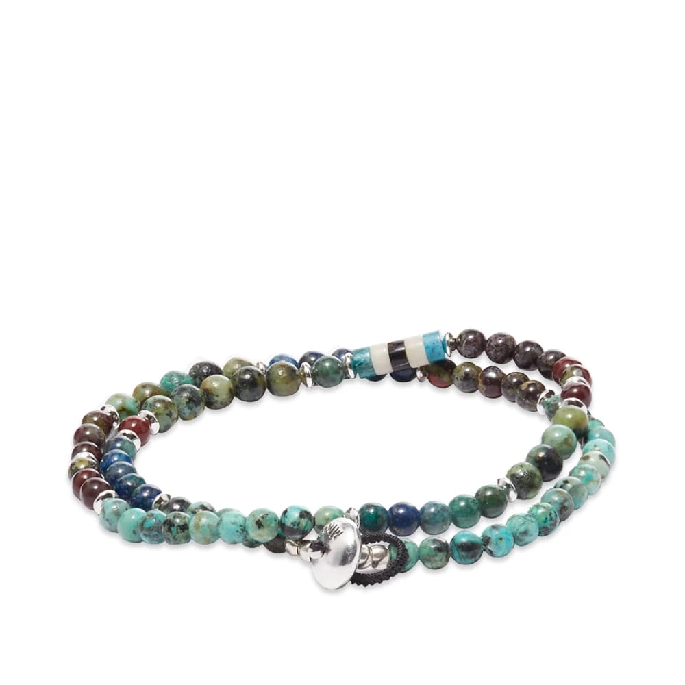 Look well-travelled with this souvenir-inspired double-wrap bracelet from Mikia. Made in Japan, it’s strung with delicate multicolour beads including African turquoise, azulite and jasper, interspersed with shining silver and fastened with a sterling silver toggle clasp.