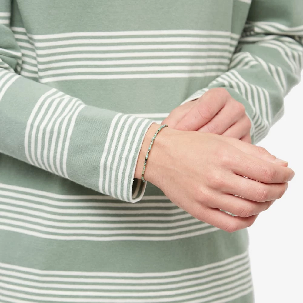 Crafted in Japan, this stylish bracelet from Mikia perfectly demonstrates the brand’s dedication to intricately crafted heirloom pieces. It’s silk cord is strung with turquoise tube beads that highlight the stone’s unique vein pattern and then finished with sterling silver crescent moon clasp for an elevated touch.