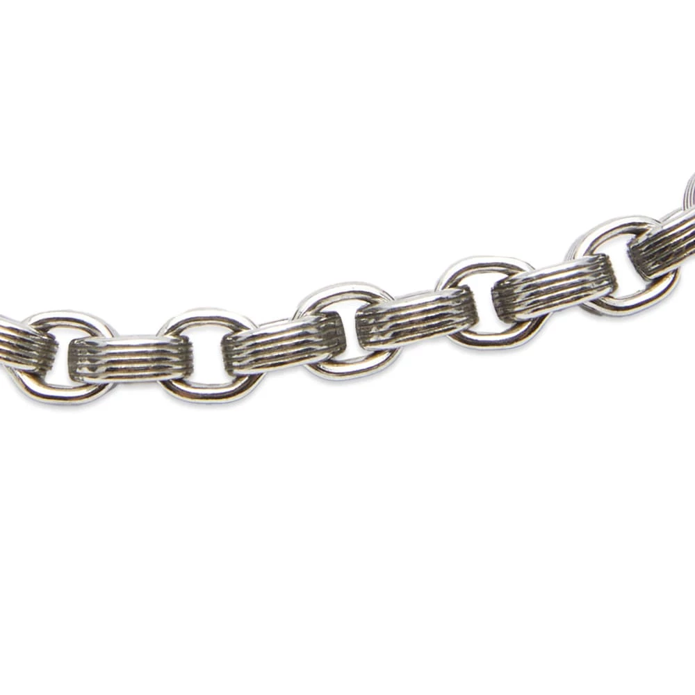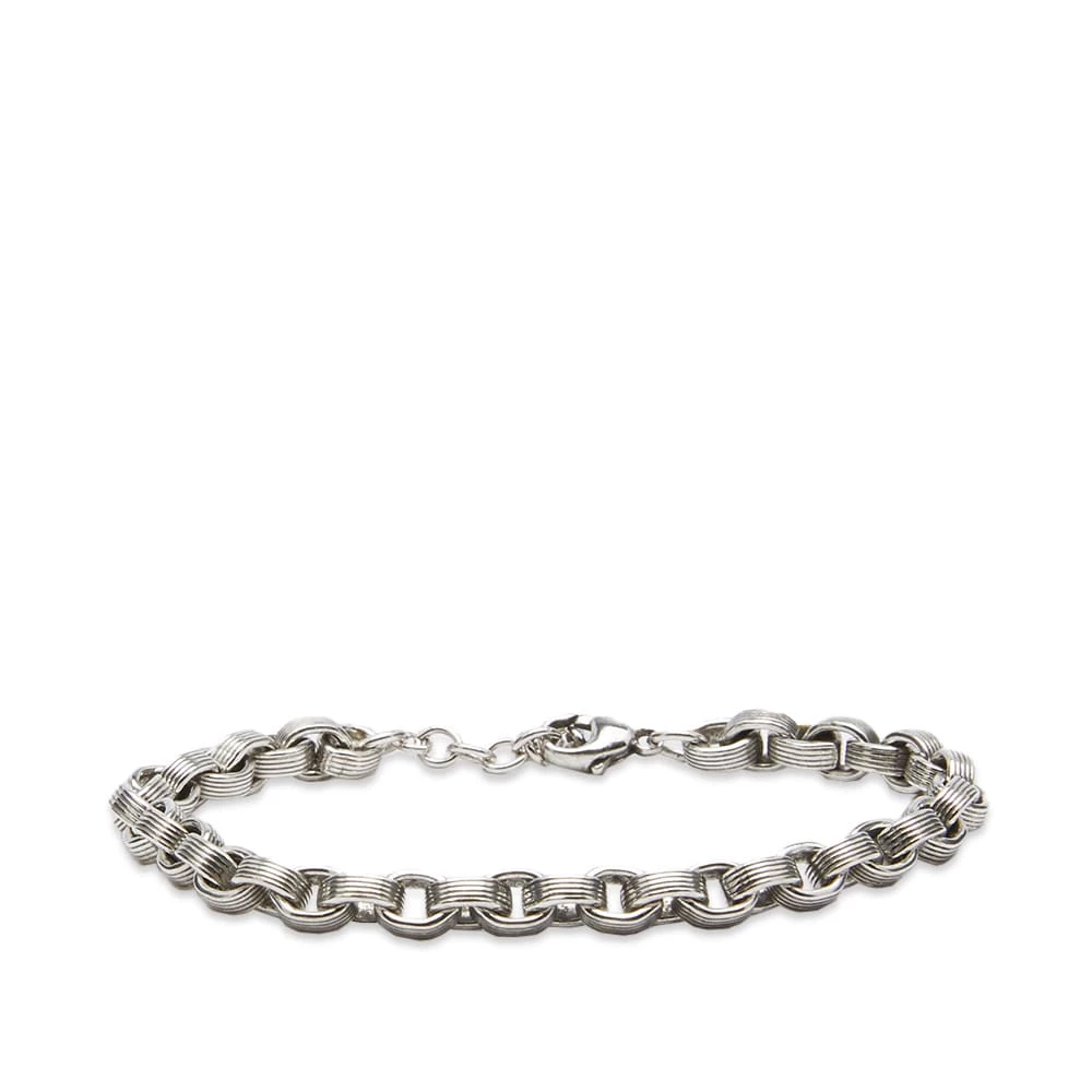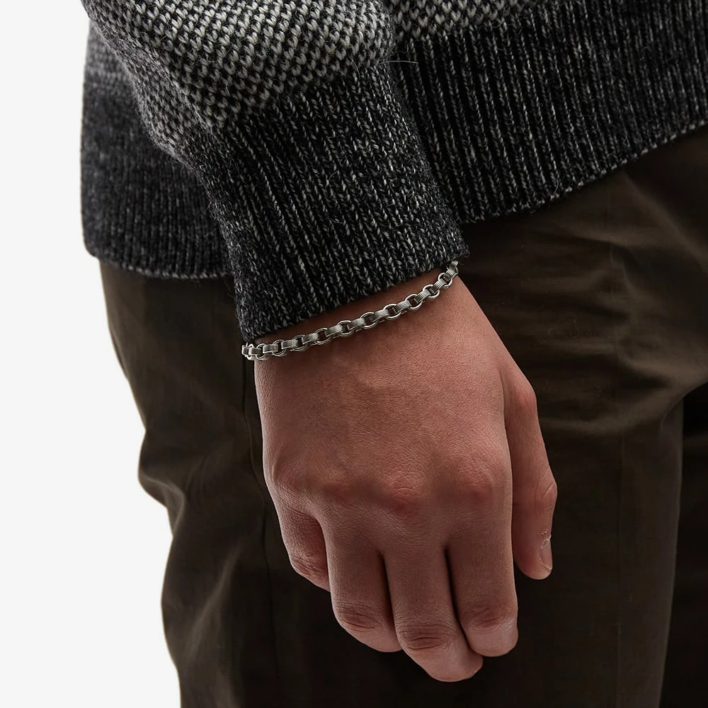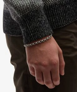 Saint Laurent continues with the rustic style jewellery to uplevel your accessory collection with the chain bracelet F. This bracelet is edgy yet elegant with its antique silver finish and interlocking links. Perfect for wearing alongside your favourite watch, the bracelet features the brand’s logo engraved onto a plaque on the closure.