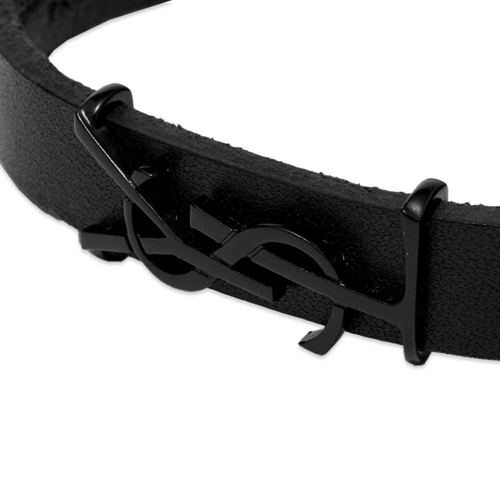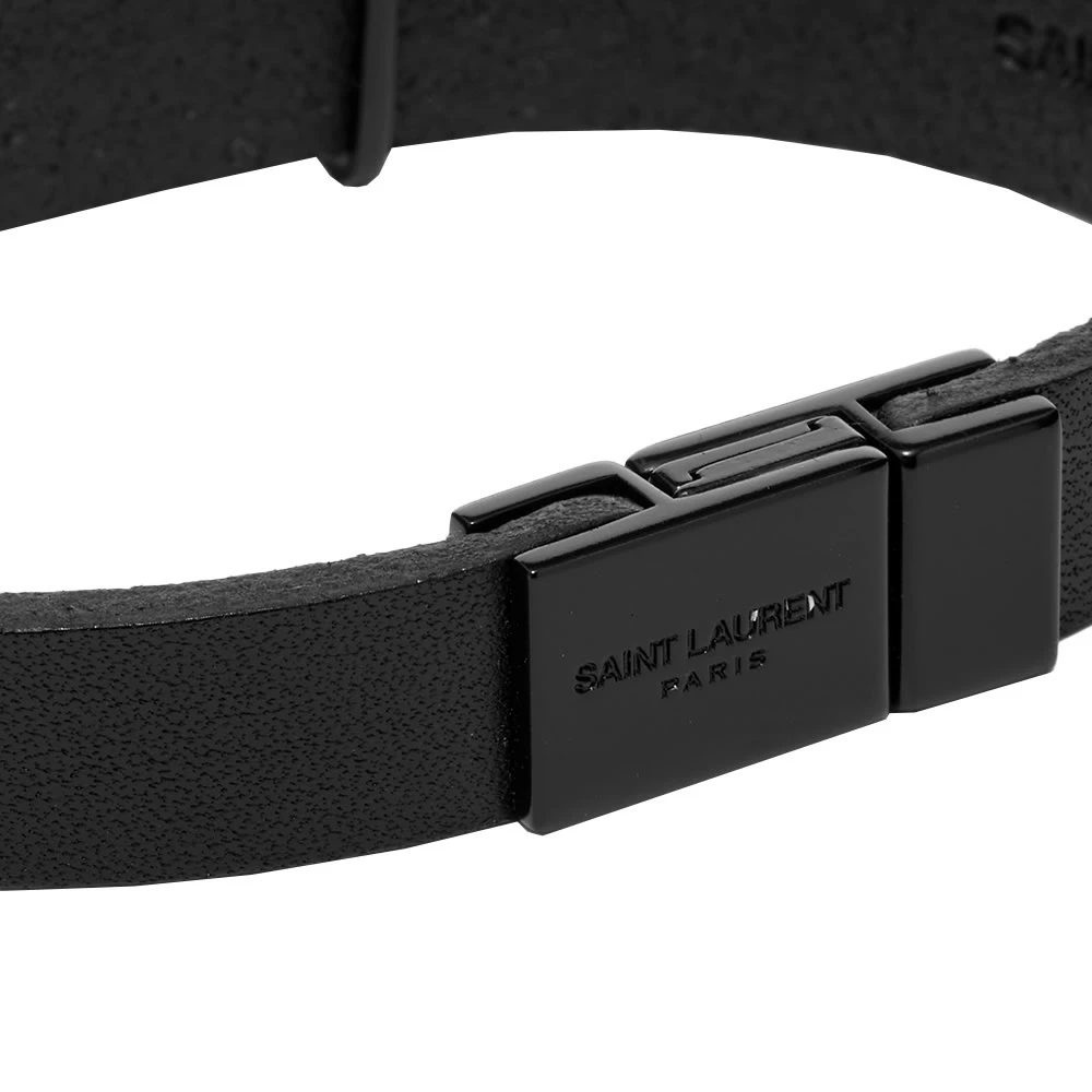 Saint Laurent’s iconic signature is the centrepiece of this bracelet. Italian-made from premium calfskin leather, the black strap is secured with a tonal metal clasp. It’s complete with the label’s monogram, adding a subtle designer touch to any outfit.
