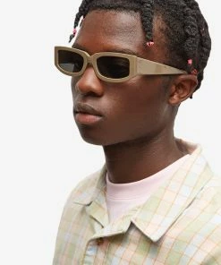 Meet your new go-to sunglasses for every season, courtesy of Sunnei. Their dark olive frames are crafted from high-quality acetate and house black lenses to keep you shaded in style. The brand’s signature logo is engraved on the arms.
