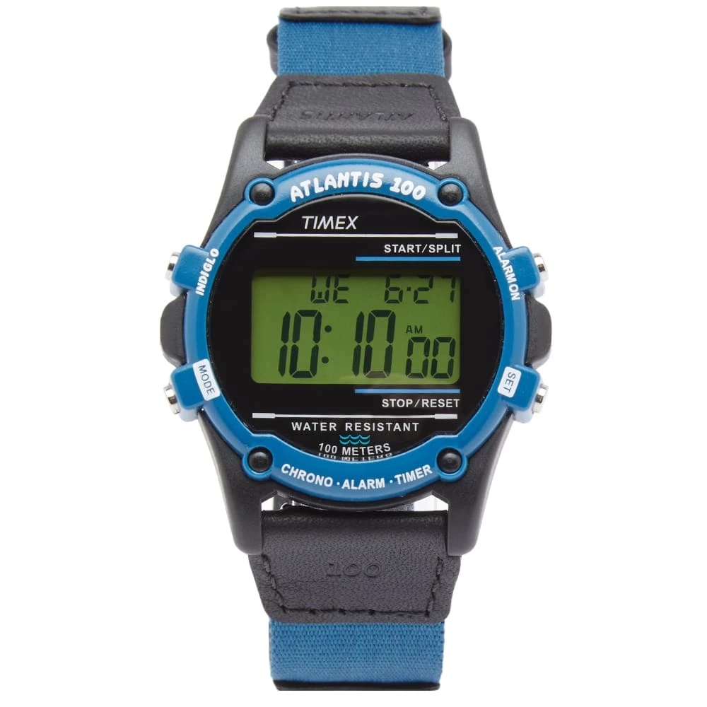 Make every second count with rebel watchmakers Timex’s Atlantis digital watch. Named after the fictional island, the Atlantis watch is aptly named for its ability to withstand 100 metres of water. In a nostalgic nod to its original 90s design, the latest take on the Atlantis stays true to form with a black and blue 40mm resin case. The original mixed-material strap design also makes a comeback, incorporating both fabric and leather for comfortable, all-day wear.