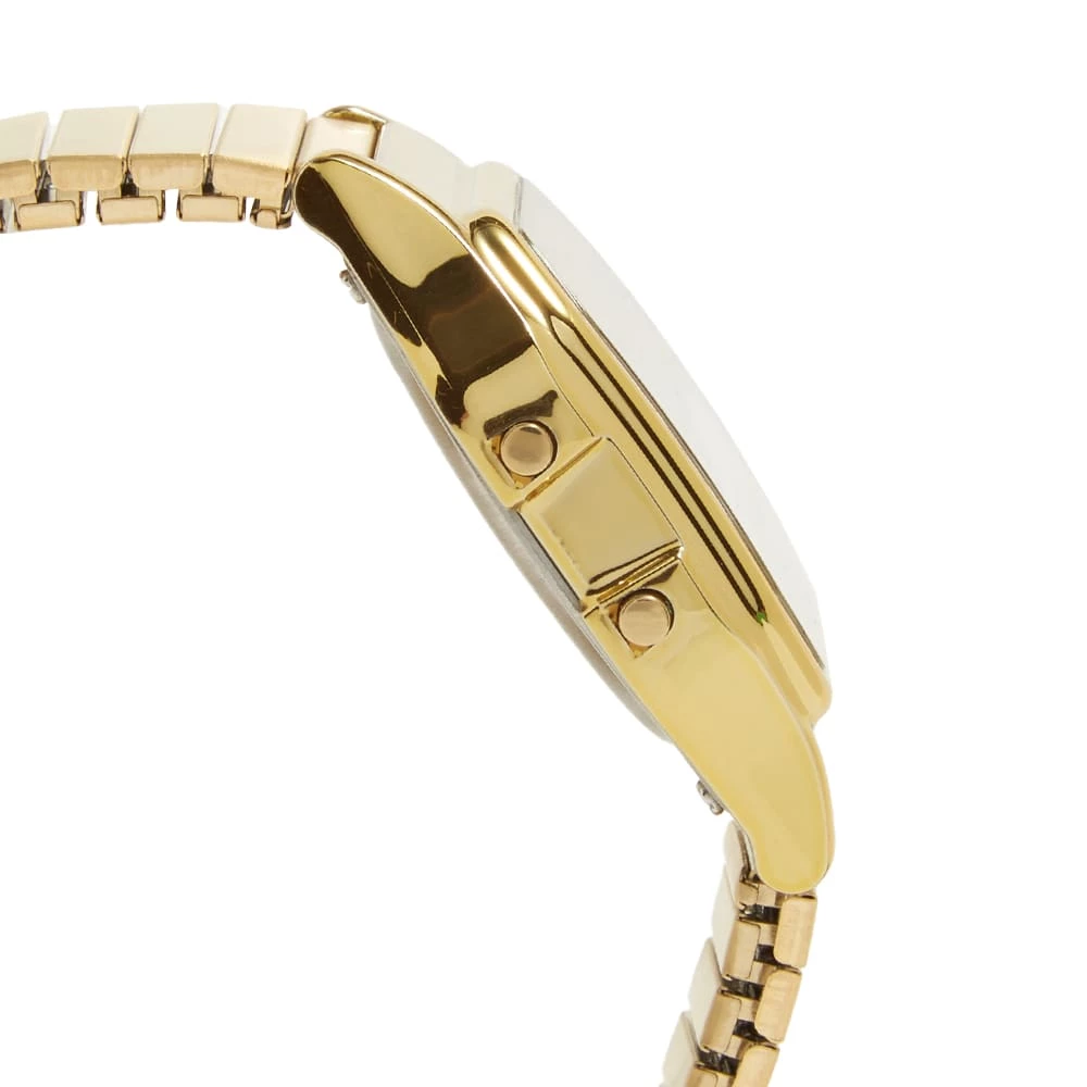 It doesn’t get any more retro than Timex’s T80 watch, as this gold one shows. It’s updated using an expansion band at its strap, though the digital display, INDIGLO® night-light and trusty features — a daily alarm and stopwatch feature — all nod to that ‘80s classic.