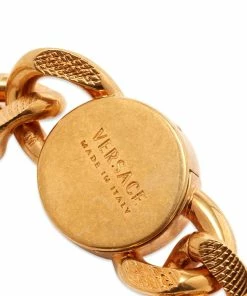 Add opulence to your everyday look with this gold-toned bracelet from Versace. It features guilloché engraving on the chain and the house’s iconic Medusa head on the charm-like clasp.